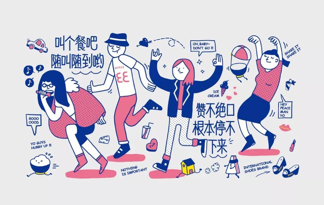 則以手繪的形式將叫餐的場(chǎng)景夸張化