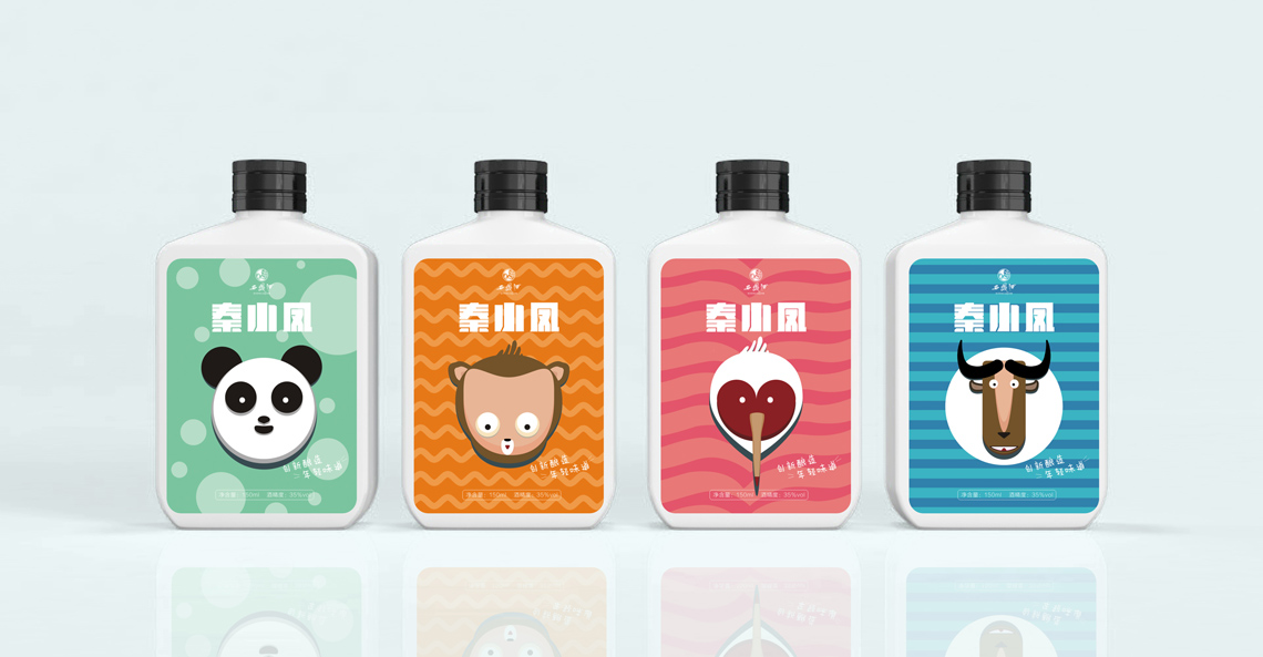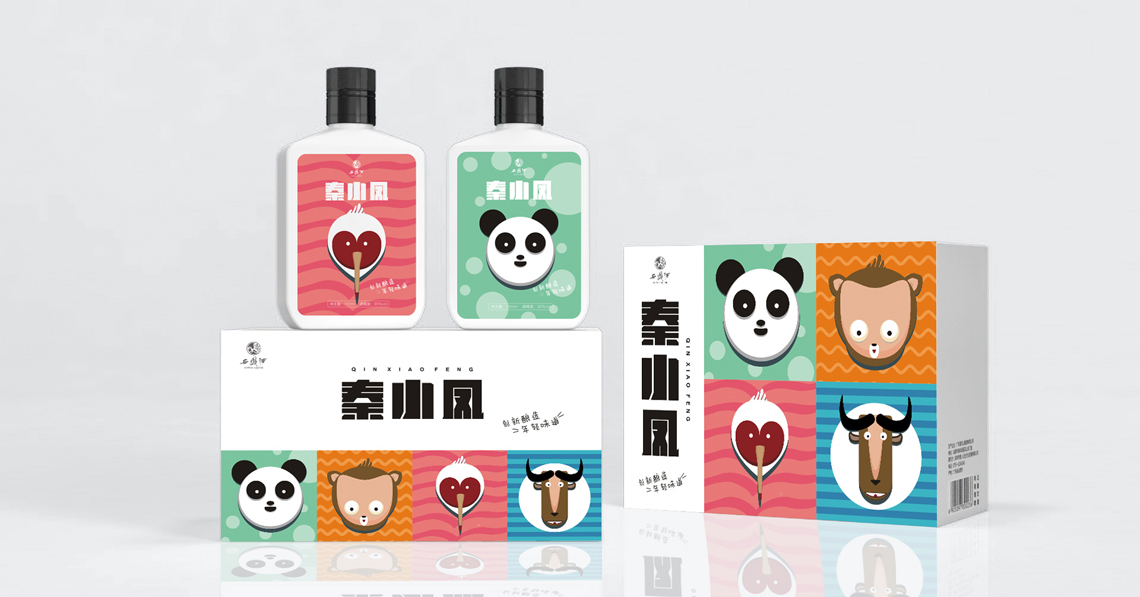 瓶標(biāo)設(shè)計(jì)上我們以“秦嶺四寶”(即大熊貓、朱鹮、金絲猴和羚牛這四種動(dòng)物)作為主創(chuàng)IP,進(jìn)行提煉創(chuàng)作,使得IP極具性格又有親和性,背景采用時(shí)尚年輕的波普?qǐng)D形。