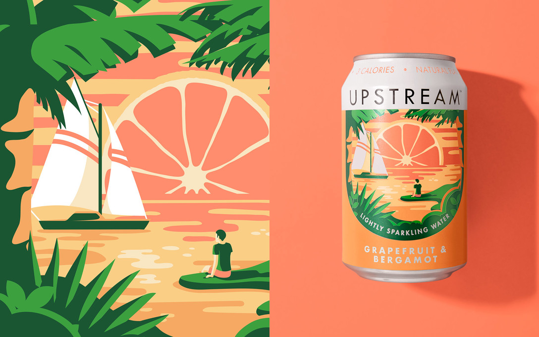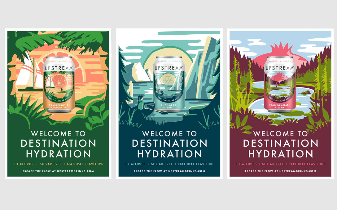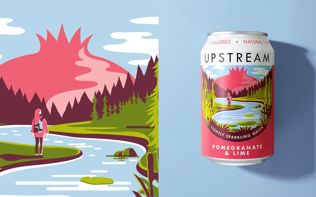 以首字母 U 為視覺符號基礎(chǔ),融合三個不同的風景插畫,創(chuàng)作了三個不同的風景插畫,分別代表不同的飲料的味道。
