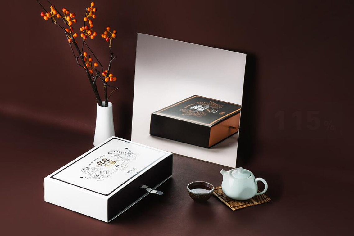 外盒設(shè)計上,一對老虎相視而站立,威風凜凜,命為虎虎生風,如同虎符一分為二,內(nèi)含了許多承諾及約定。