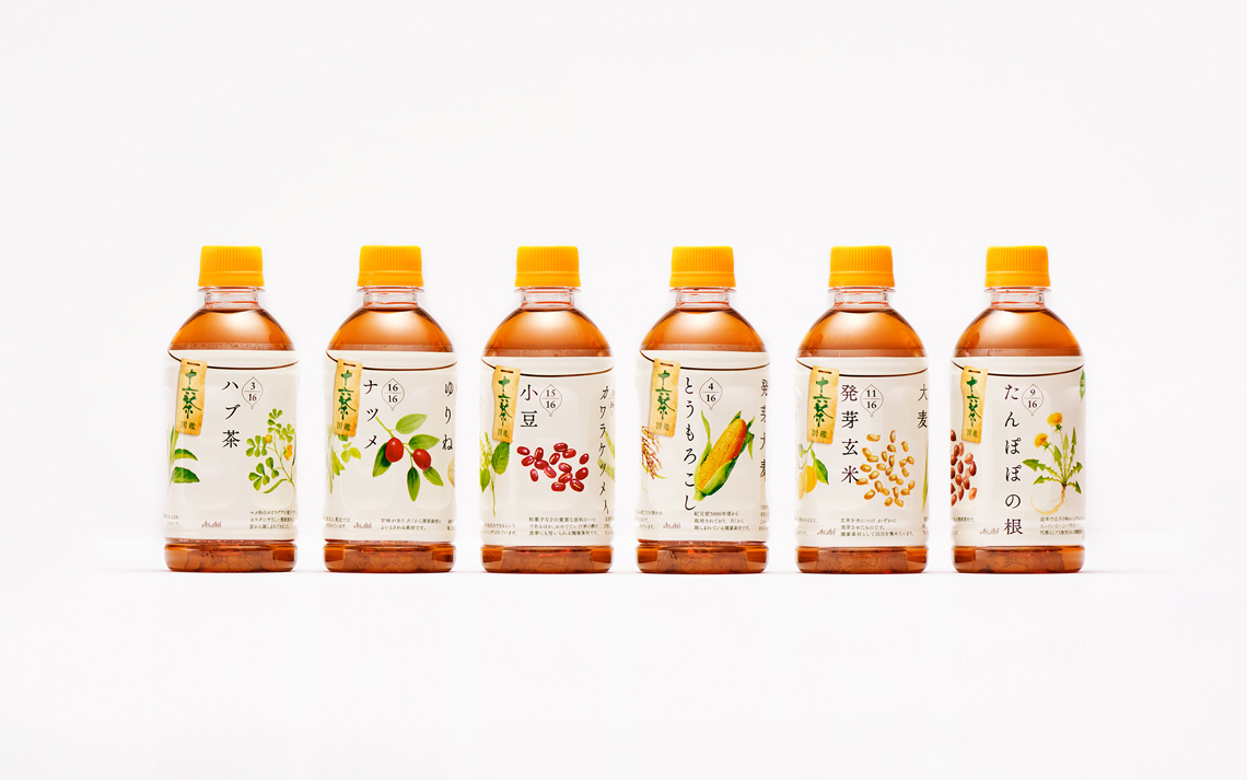 這是LOHACO限定版十六茶的包裝設(shè)計。將十六種原料逐一放大特寫,