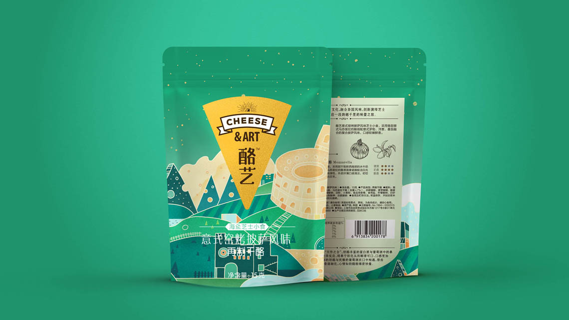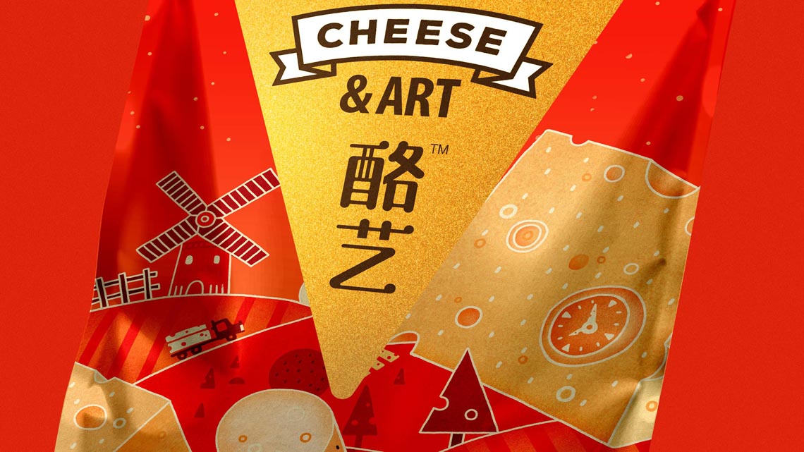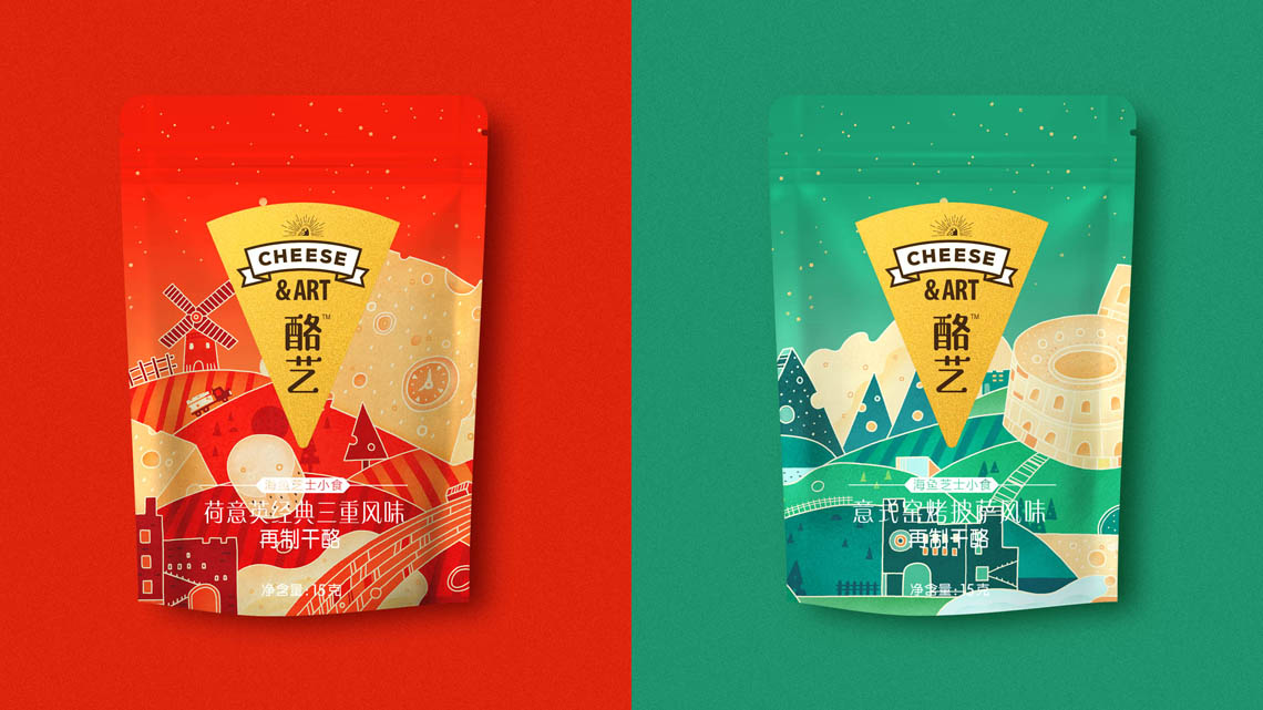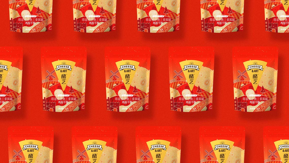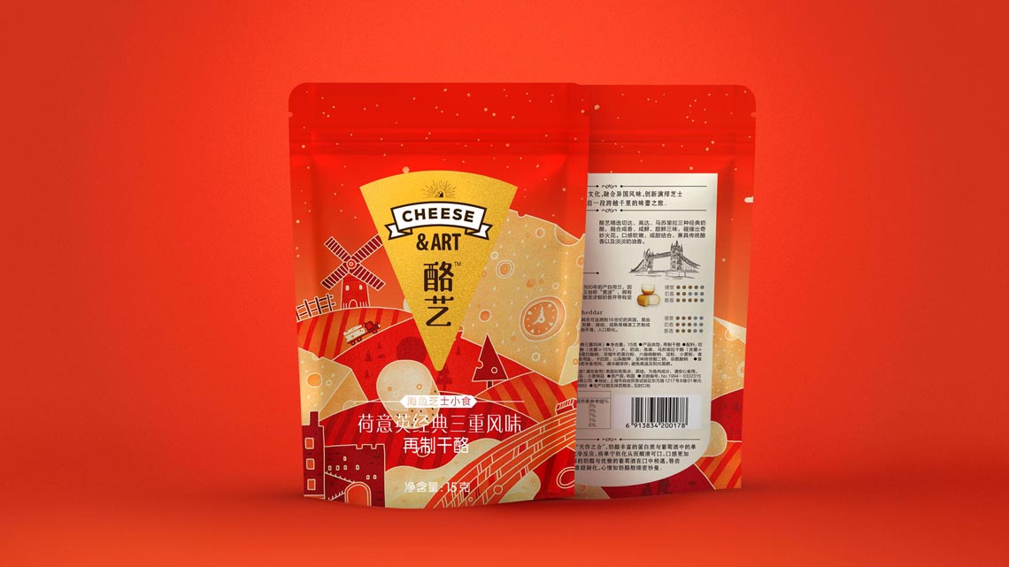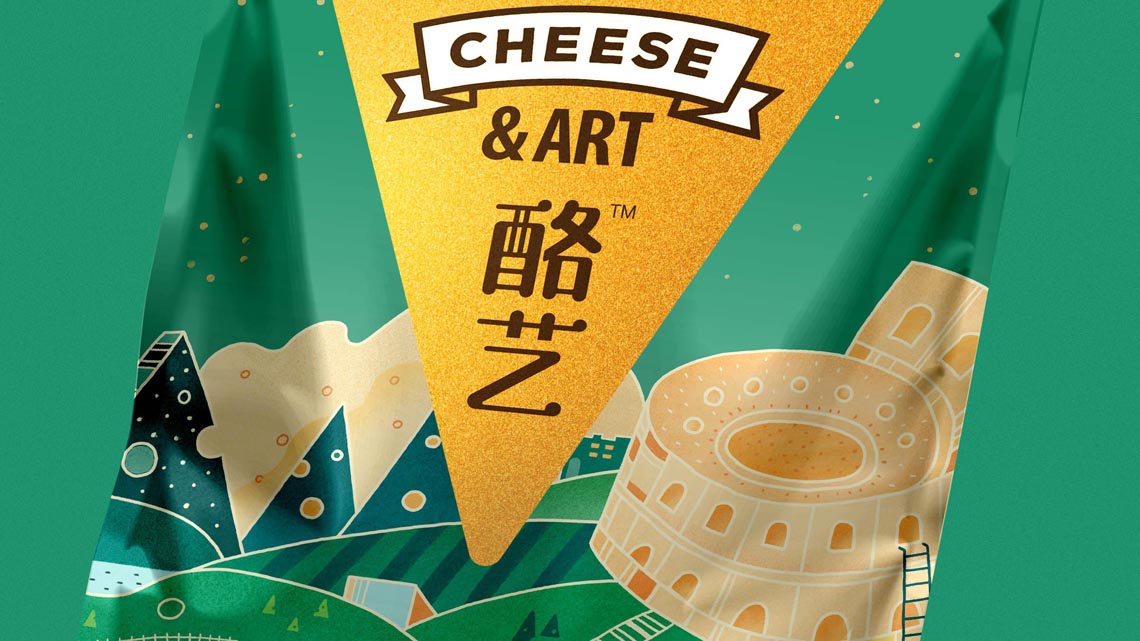 這是伊利旗下的品牌, 為了針對(duì)年輕消費(fèi)群體, 客戶計(jì)劃對(duì)包裝提升新一輪升級(jí)。因此在設(shè)計(jì)上也應(yīng)當(dāng)表現(xiàn)故事性趣味感。我們通過(guò)區(qū)分對(duì)應(yīng)的口味分類,將各國(guó)的元素重組,并重新繪制出新的干酪地圖, 如圖中看到那樣,干酪的山體、長(zhǎng)城干酪、 荷蘭風(fēng)車、羅馬斗獸場(chǎng)等等元素。在視覺(jué)上形成干酪世界,自然的融入到包裝載體中,使人對(duì)我們的產(chǎn)品有了聯(lián)想和購(gòu)買(mǎi)欲望。