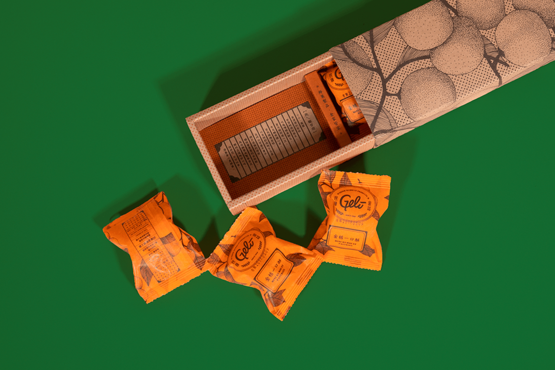 設(shè)計採深橘色搭配懷舊的牛皮材紙來表達童叟無欺的品牌精神,