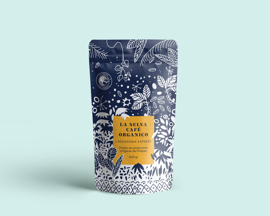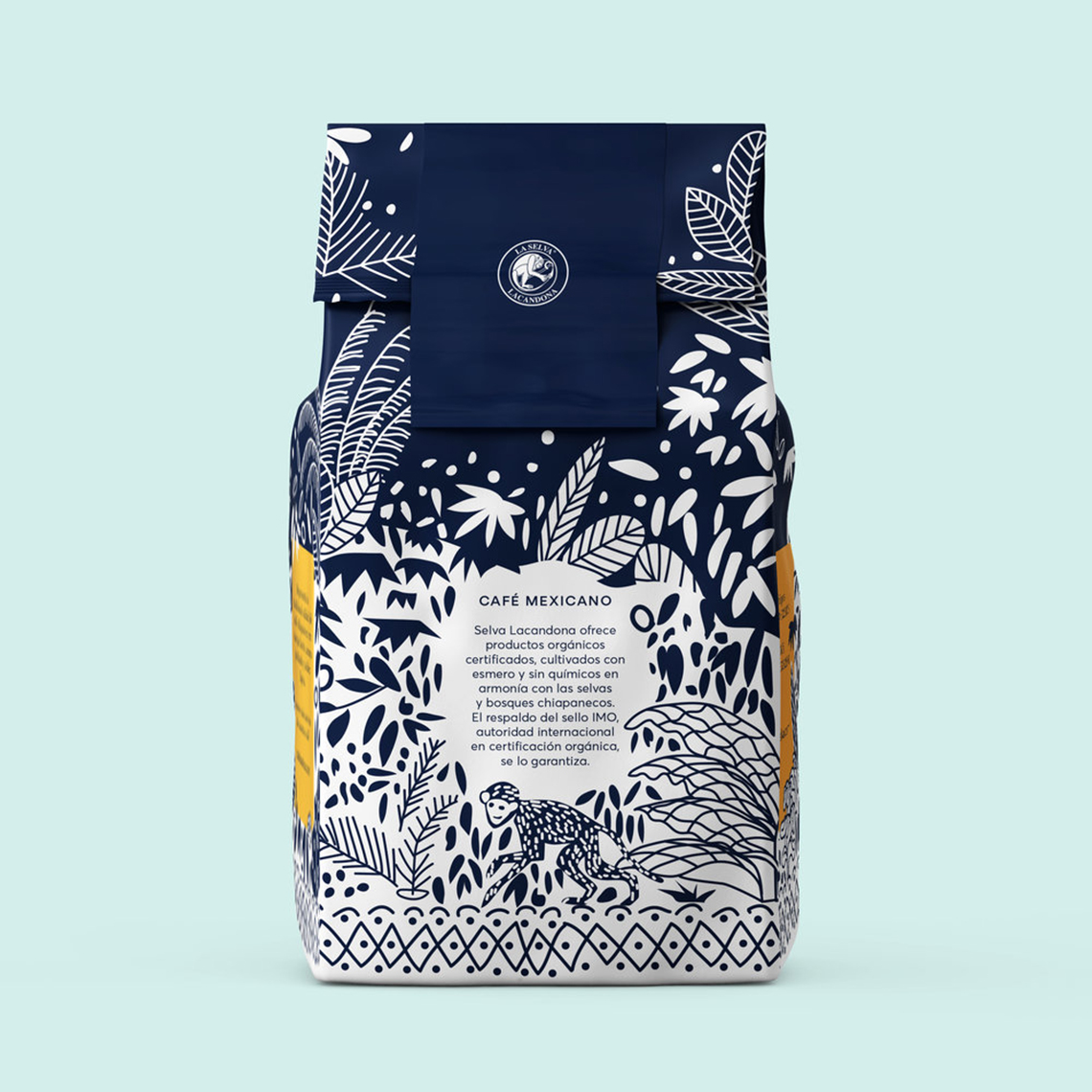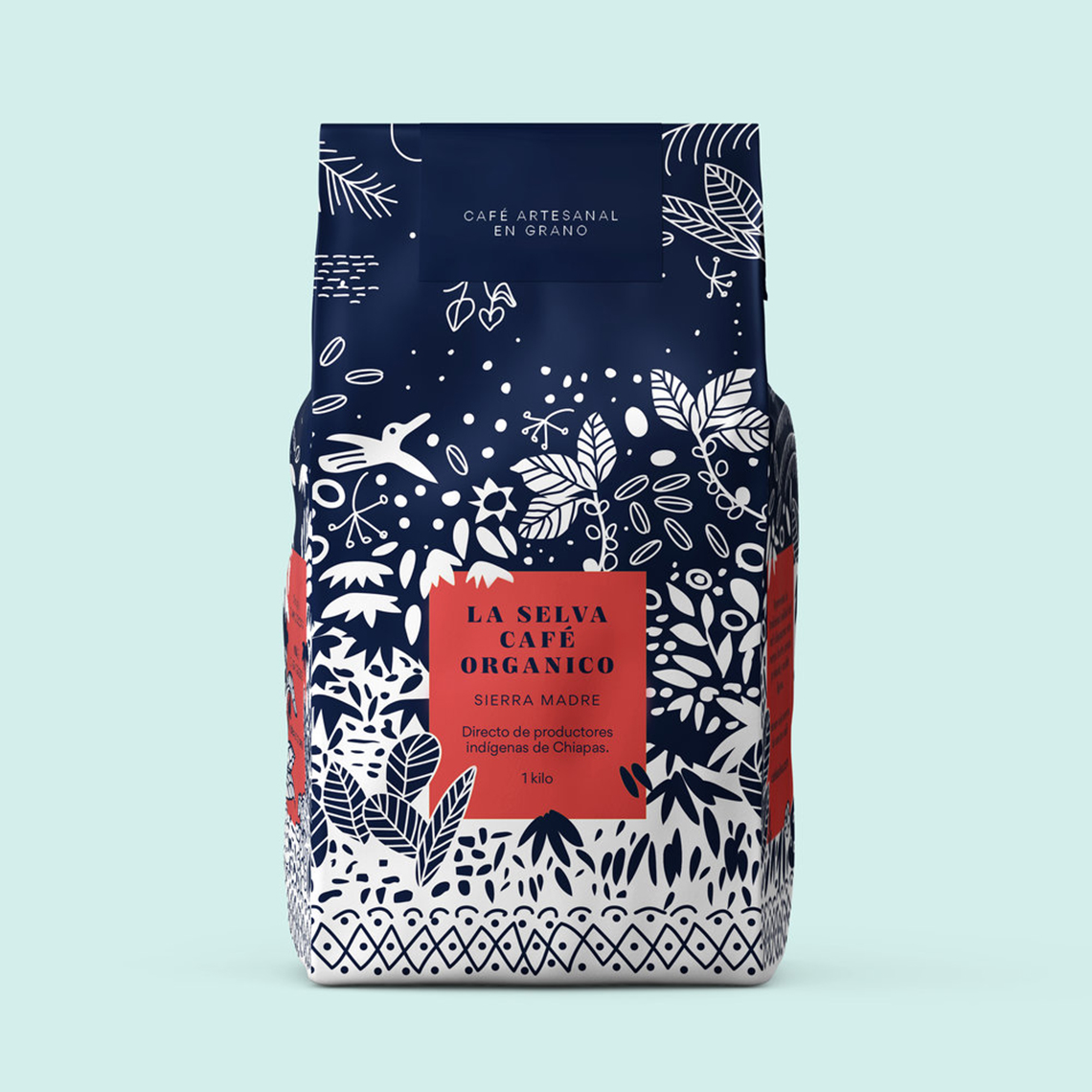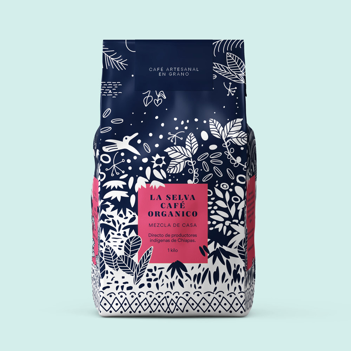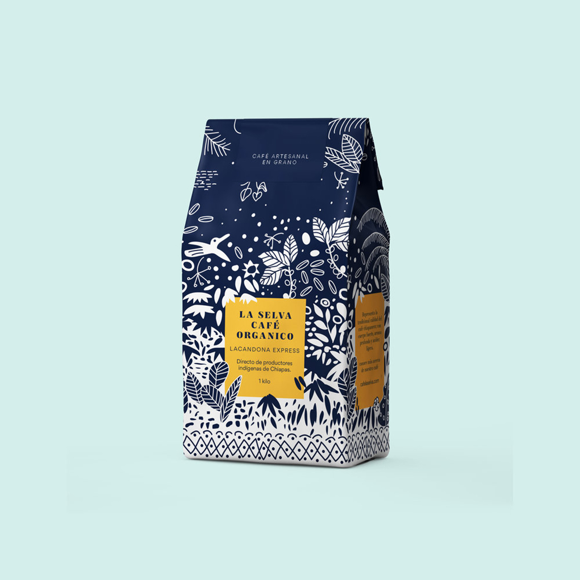 ? ? ? ? La Selva Café提供經(jīng)認證的有機產(chǎn)品,經(jīng)過精心培育,沒有化學品,與墨西哥恰帕斯的叢林和森林和諧相處。它代表了恰帕斯咖啡的傳統(tǒng)品質(zhì),具有濃郁的酒體、濃郁的香氣和淡淡的酸度。海事組織印章的支持保證了其有機來源。為了重新設計,以前的包裝插圖的元素被采取,使它有一個更現(xiàn)代和更具吸引力的扭曲。深藍色的顏色和正負兩色之間的相互作用,說明了咖啡采摘的茂密叢林,這是該地區(qū)典型的動植物間的叢林。