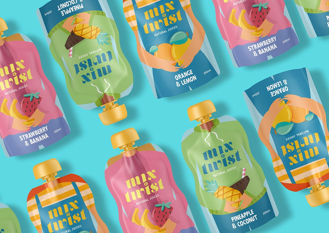 Mix&Twist的品牌和包裝設(shè)計(jì),一種不含添加劑或人工的天然果汁品牌,其特點(diǎn)是其主要成分的原始混合物。創(chuàng)造了一個(gè)引人注目的和與眾不同的設(shè)計(jì),基于主要的消費(fèi)者:青少年正在尋找一個(gè)健康,但花哨的產(chǎn)品。這就是為什么要為不同的身體青少年角色制作插圖,所以當(dāng)他們喝果汁時(shí),他們就會(huì)成為你身體的一部分。對(duì)于標(biāo)志,使用一個(gè)更冷靜的風(fēng)格,帶來(lái)信心和嚴(yán)肅的設(shè)計(jì),代表最健康的部分混合和扭曲。這一設(shè)計(jì)打破了果汁行業(yè)的標(biāo)準(zhǔn),無(wú)疑會(huì)引起超市的注意。