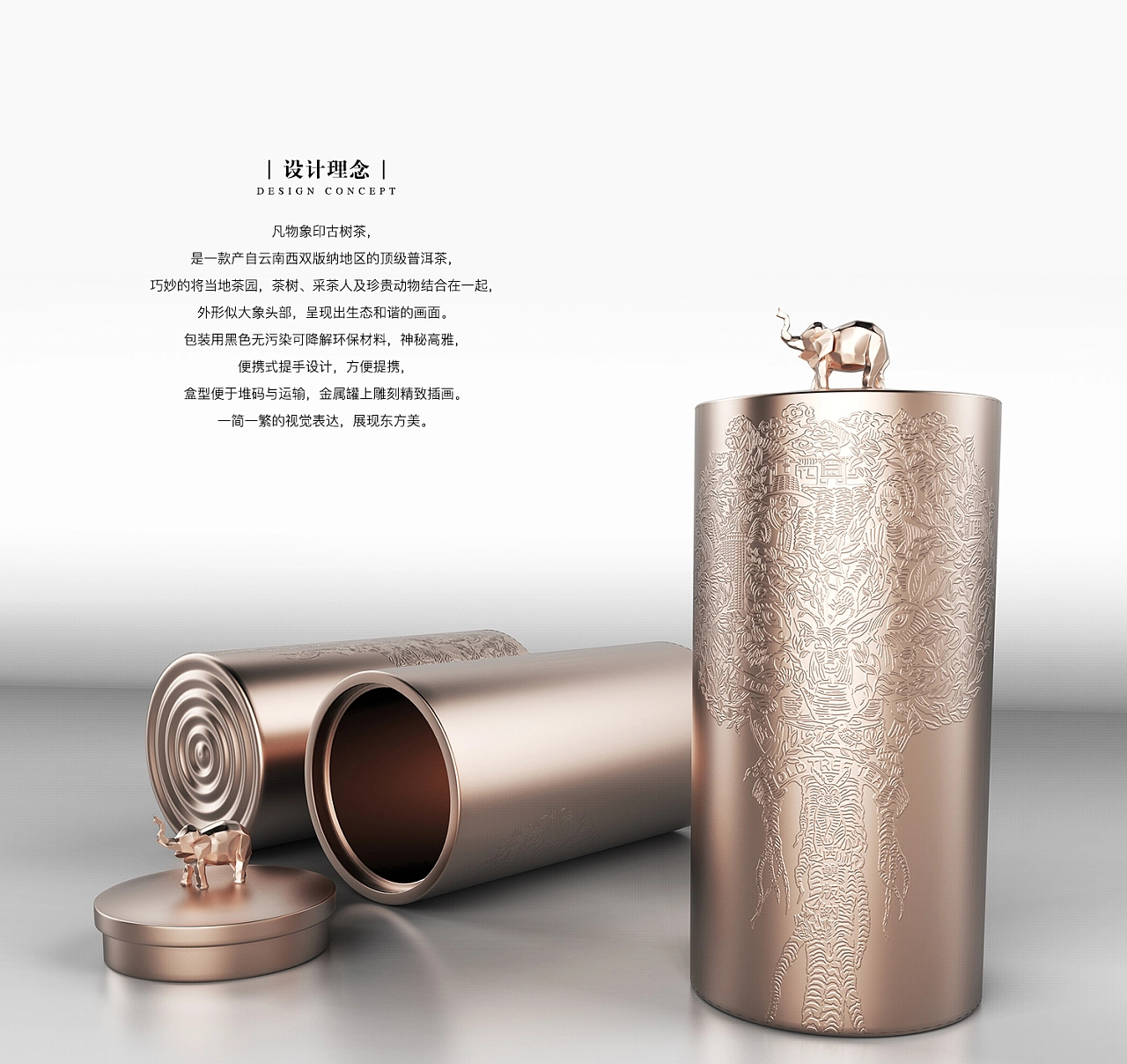 來(lái)自云南西雙版納的普洱茶,外包裝也加入當(dāng)?shù)夭鑸@、采茶人及大象等元素,再現(xiàn)云南的人文地理風(fēng)情